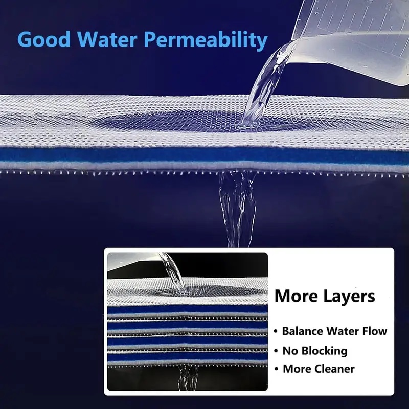 : Great filtration effect comes from the delicate design. This upgrade water filtration pad ensures both effective filtration and smooth water flowing. Designed with 8 layers of different density filtration material builds up a barrier preventing hazard impurities get into water, quickly build up an effective filtration system for your aquarium tank.