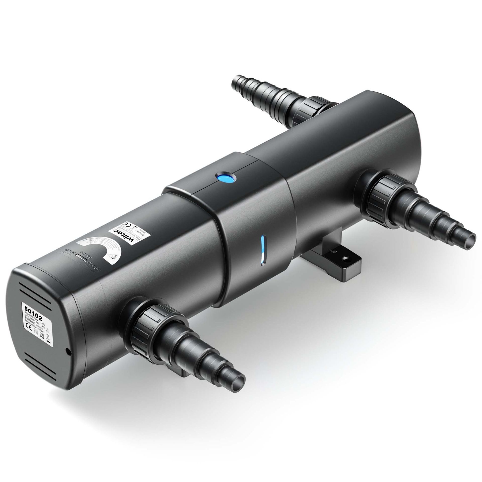All UVC water clarifiers are delivered with light source and stepped hosetails.