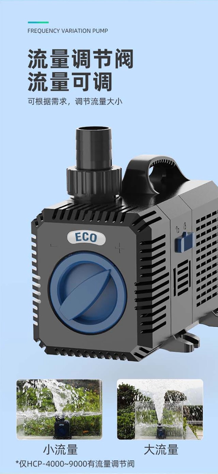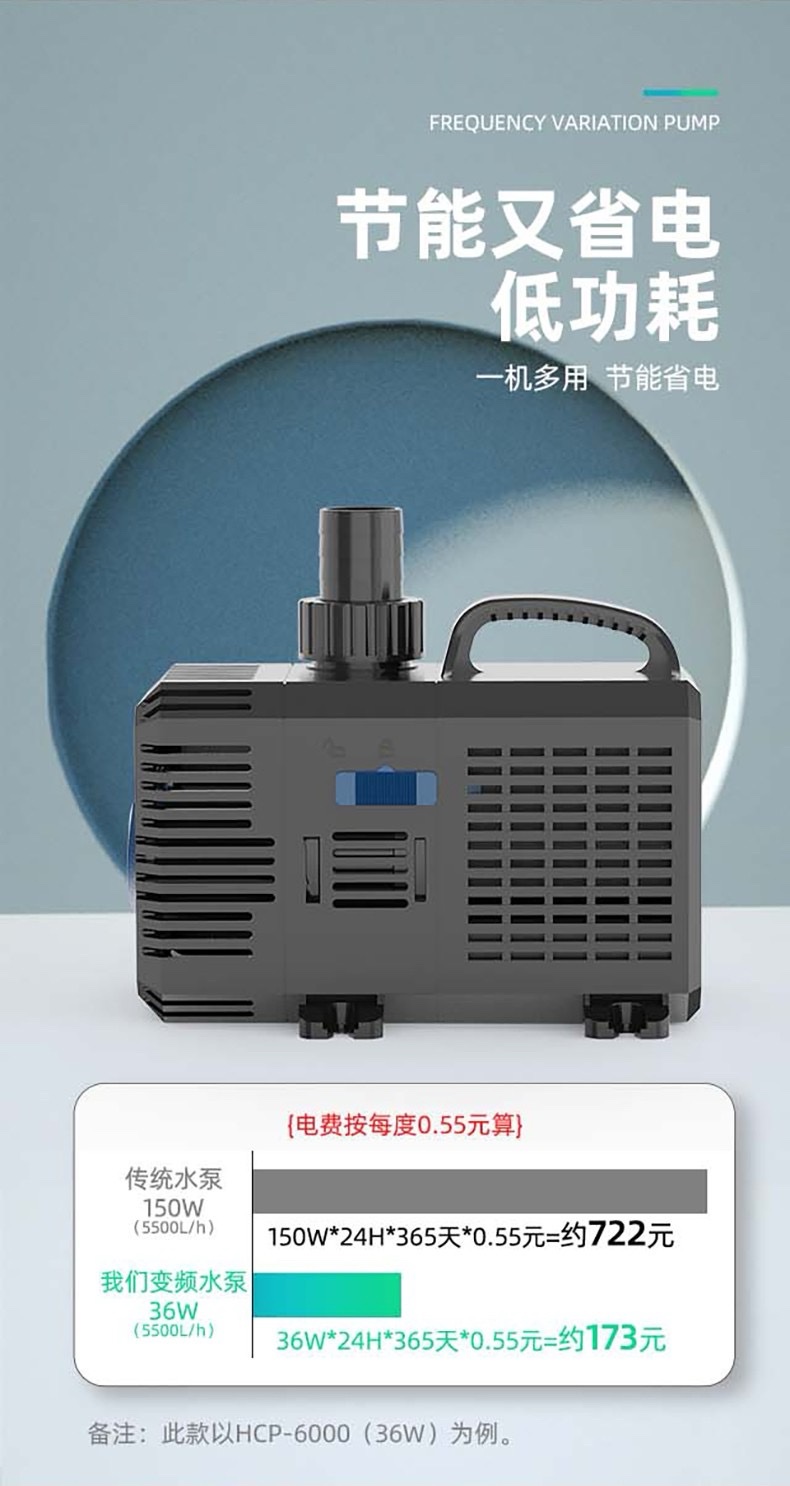 SUNSUN Frequency Variation Pump, part of the HCP-series. These are submersible pumps designed for various aquatic applications like aquariums, ponds, and fountains.